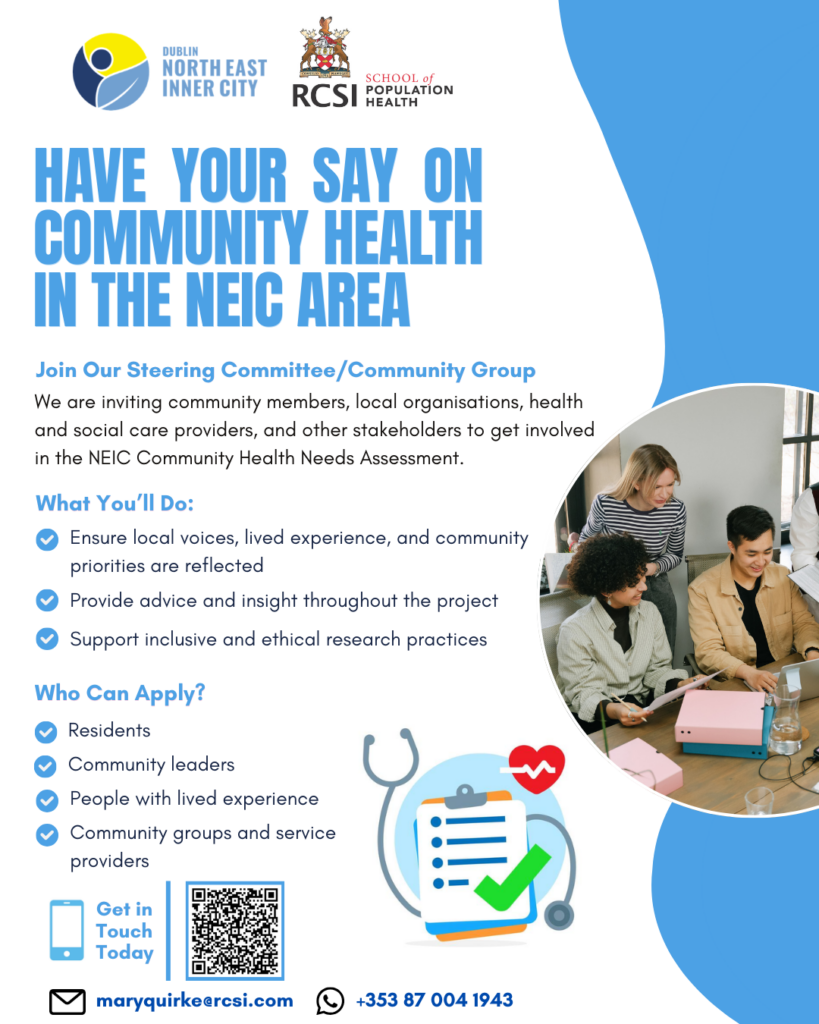 Royal College of Surgeons of Ireland (RCSI) are conducting a Community Health Needs Assessment (HNA) in partnership with, and funded by, the North East Inner City Initiative.